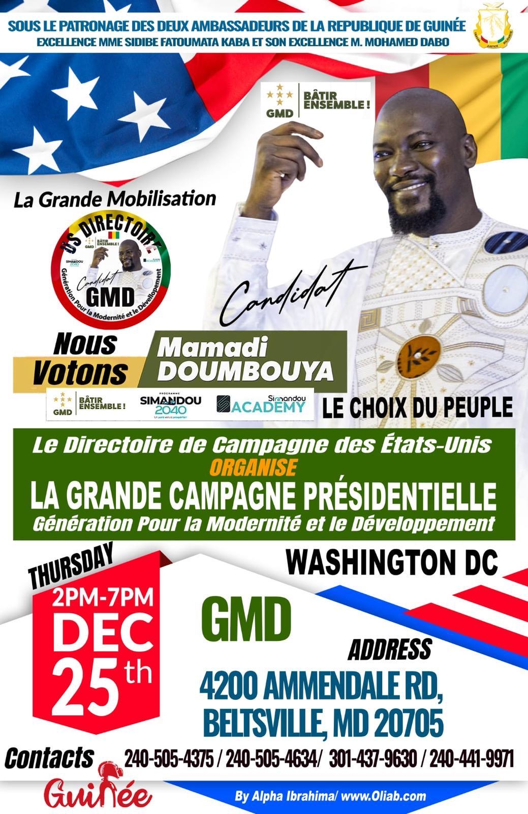 Par ailleurs, une organisation de soutien à Mamadi Doumbouya est prévue le jeudi 25 décembre à Washington DC, selon nos sources.